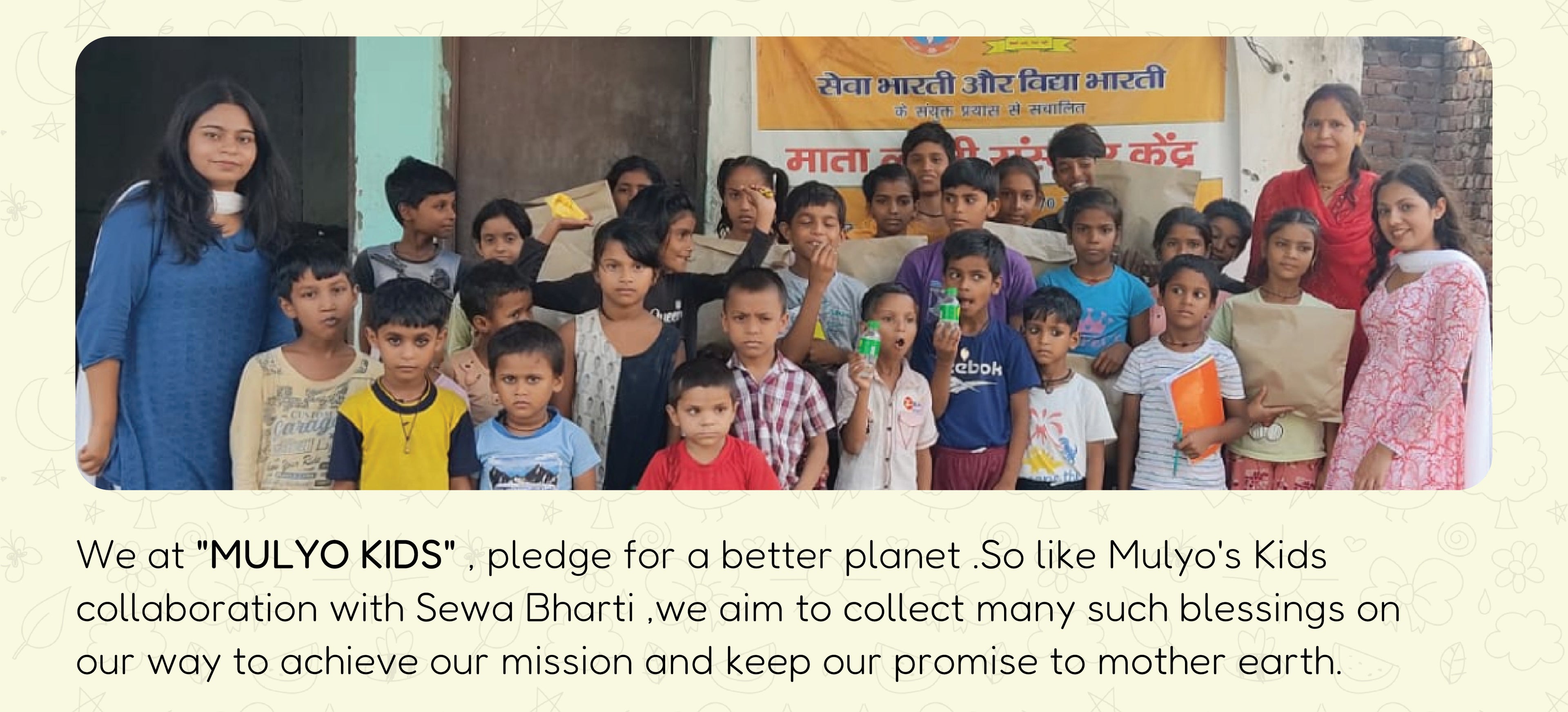 The foundation to a healthy society is "Gratitude and Giving back" . "MULYO" ,a sustainable and ethical kidswear brand,is committed to the welfare of humankind and environment, consequently to a Healthier Planet. We in "MULYO" are ever so grateful to be able to actively contribute to one such cause, from the 'many yet to come' baby steps to our vision.